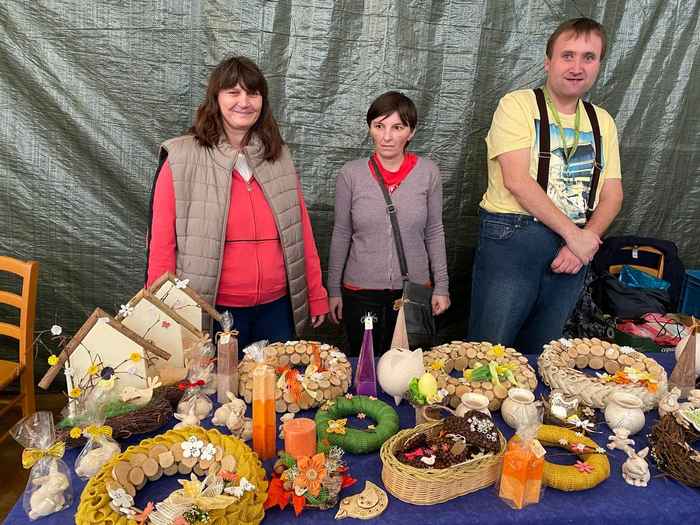 V pátek 18. března jsme se opět po dlouhé době zúčastnili prodejního jarmarku v Kulturním domě v Branicích. Přivezli jsme k prodeji výrobky z našich ergoterapeutických dílen, především dekorace s jarní tématikou, velikonoční věnce, ale i keramické výrobky.
