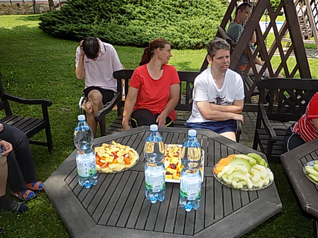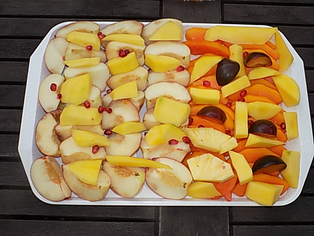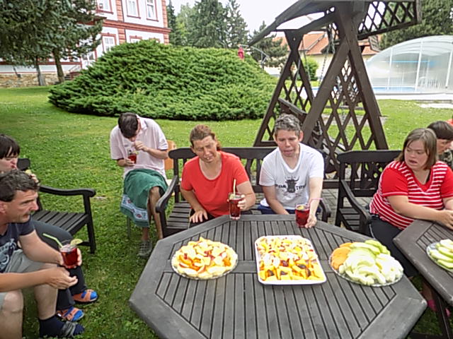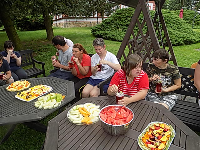 Je neděle, 4. července, a my se chystáme na ovocnou párty v naší zahradě. Různé ovoce, které krásně voní a vybízí k snědku, na nás kouká z připravených táců. A to ještě není vše, ovocné drinky, které chutnají báječně, nás v tomto letním dni perfektně osvěží. K tomu všemu nám DJ Kali pouští super písničky. Co víc si můžeme přát? Léto budiž pochváleno!