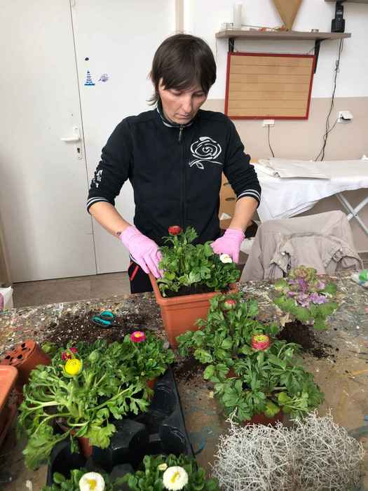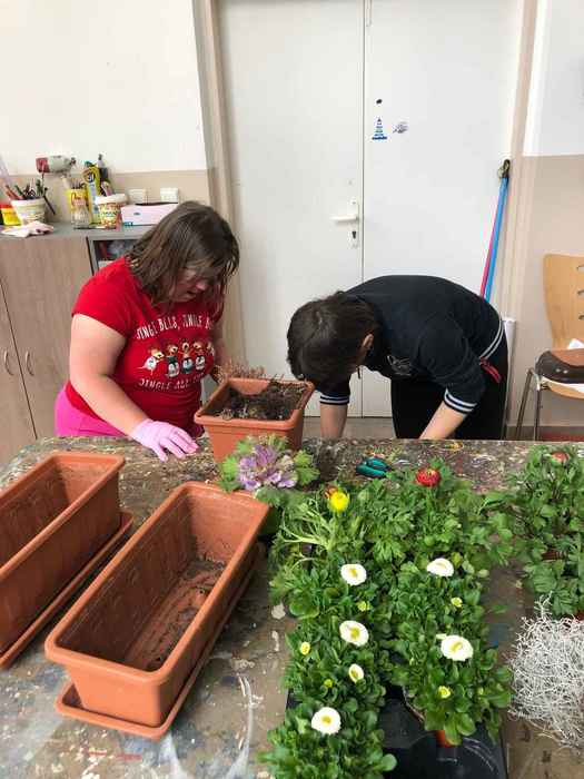 Venku je zatím stále velká zima, jarní náladu se snažíme navodit alespoň jarní květinovou výzdobou, proto jsme se pustili do vysazování květin do truhlíků.