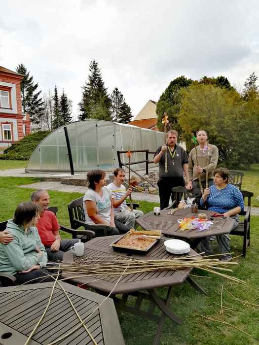 I letos jsme si připomněli, jak připravit velikonoční nádivku. Odpoledne jsme využili pěkného počasí a při procházce nařezali proutky, z kterých jsme pak upletli pomlázky a společně si pochutnali na již upečené nádivce.