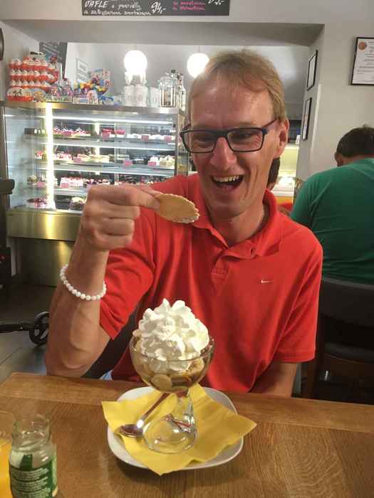Odměnou za strastiplnou cestu, byla návštěva cukrárny v Písku. Moc jsme si dopoledne užili, pochutnali si a spokojeni vrátili zpět.