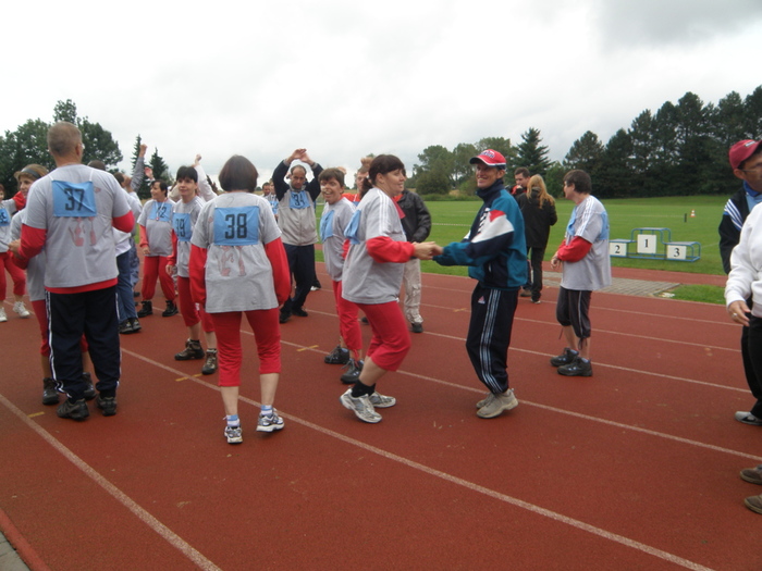Po několika dnech příprav a plánování, nastal den D, středa 19.září a s ní I.ročník atletických závodů naší organizace v Bechyni. I přes nepříznivé počasí na akci dorazilo 75 sportovů z 11-ti zařízení. Těšili se, že změří své síly v běhu na 50m a 100m, ve skoku z místa a skoku dalekém, v hodu kriketovým míčkem a ve vrhu koulí. Po slavnostním nástupu a zahájení se postupně rozjelo všech 34 závodů. Během celého dopoledne ze sebe sportovci vydávali maximum. Průběžně docházelo k vyhlašování výsledků jednotlivých závodů. 3 nejúspěšnější sportovci vždy získali medaili, pro ostatní bylo přichystáno upomínkové keramické sluníčko. Výkony jednotlivých sportovců byly bodově hodnoceny a zapsány do soutěže družstev. A tak jsme na konci mohli vyhlásit družstvo nejúspěšnější.