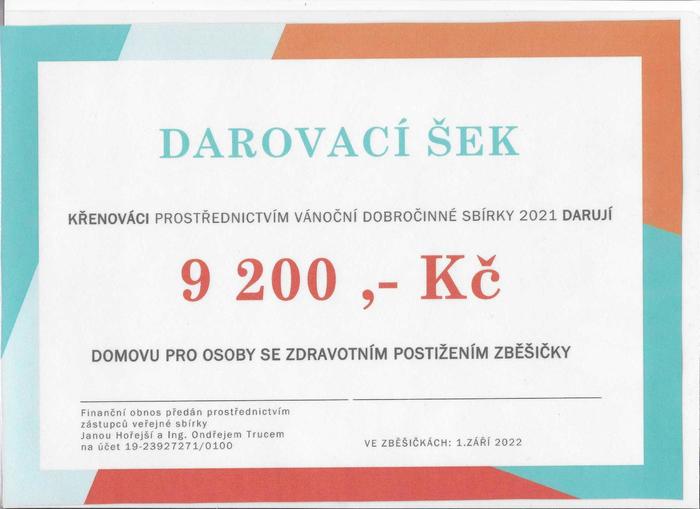 Úvod > SMAZAT - po kontrole obsahu zákazníkem > Domov pro osoby se zdravotním postižením Zběšičky > Aktuality a fotogalerie > Poděkování obyvatelům Obce Křenovice za peněžní dar > Předání darovacího šeku ve Zběšičkách