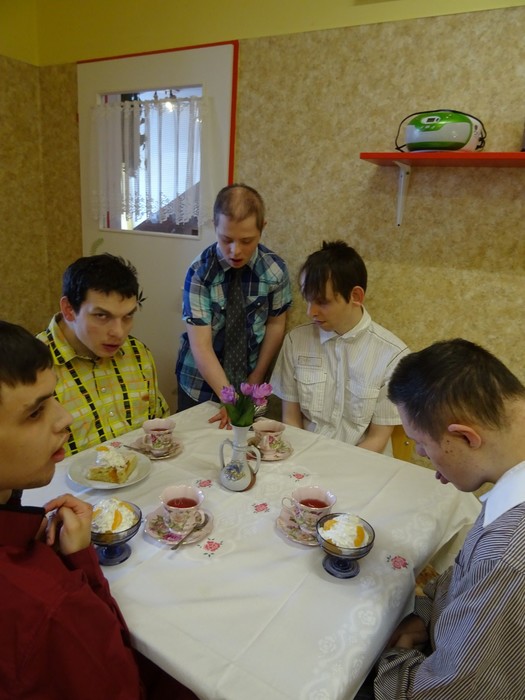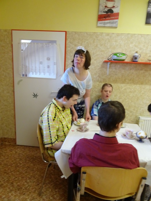 I u nás doma jsme si vytvořili malou kavárnu a na jedno odpoledne se z nás stali servírky. Při obsluhování kamarádů jsme si užili spoustu legrace, nikdo neměl kávu v klíně či dezert na zádech, takže super!!!