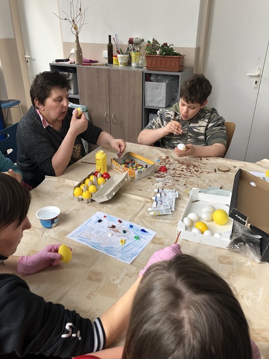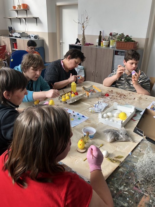 Úvod > SMAZAT - po kontrole obsahu zákazníkem > Domov pro osoby se zdravotním postižením Zběšičky > Aktuality a fotogalerie > Velikonoční tvoření > Výroba velikonočních dekorací